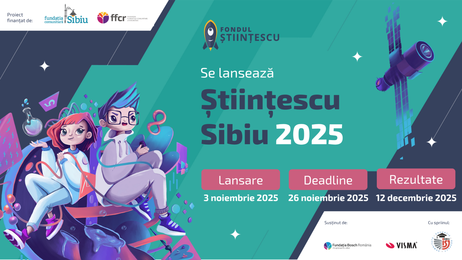 Fondul Științescu Sibiu 8.0 este realizat de Fundația Comunitară Sibiu, alături de Federația Fundațiilor Comunitare din România, Fundația Bosch România, Visma Sibiu și Inspectoratul Școlar Județean Sibiu.